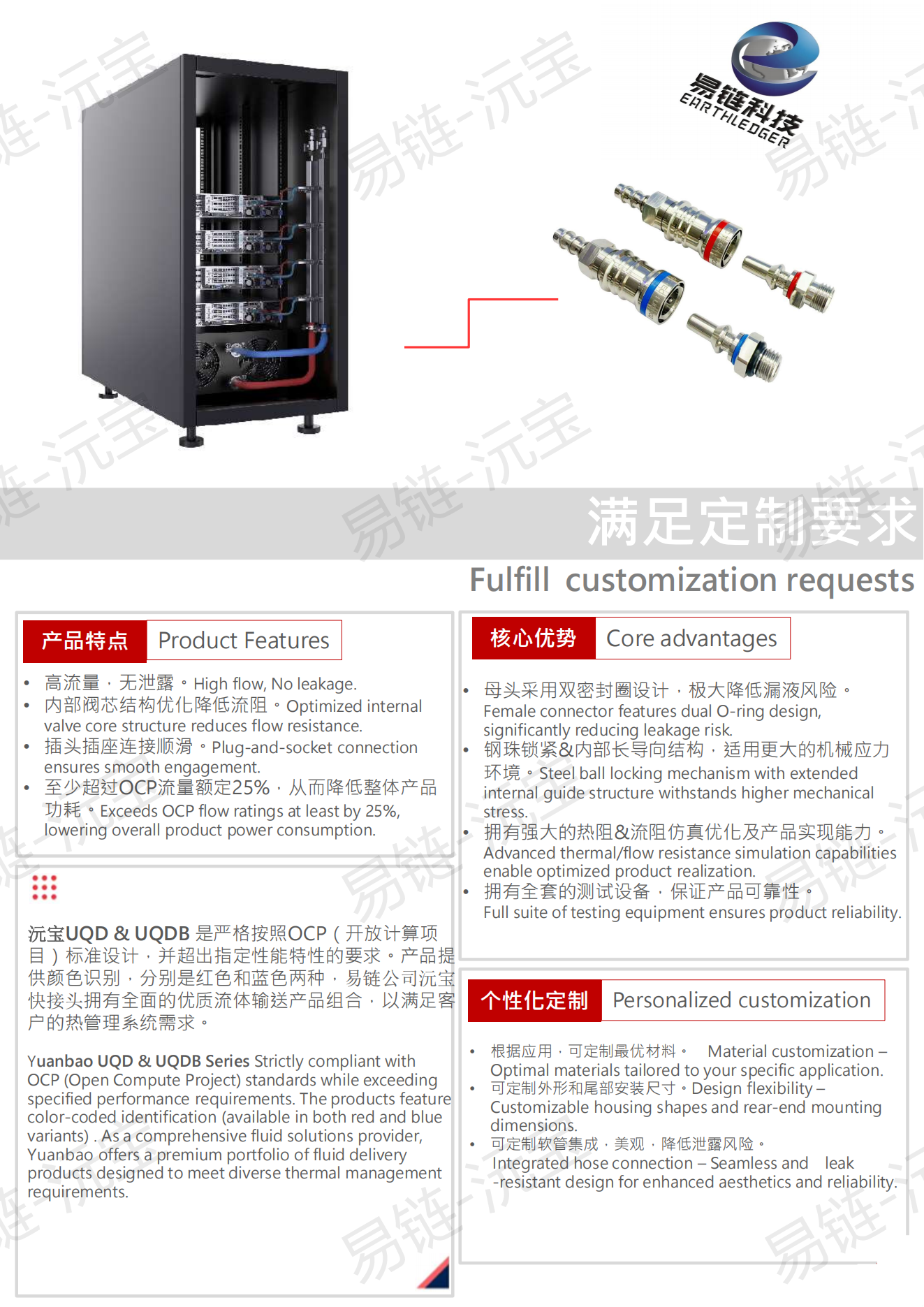 直插式UQD-02结构便于快速安装与拆卸,简化水冷系统连接流程;G1/8 接口规格标准化,确保与对应设备的兼容性,助力保障水冷系统稳定运行,为设备高效散热提供连接支持