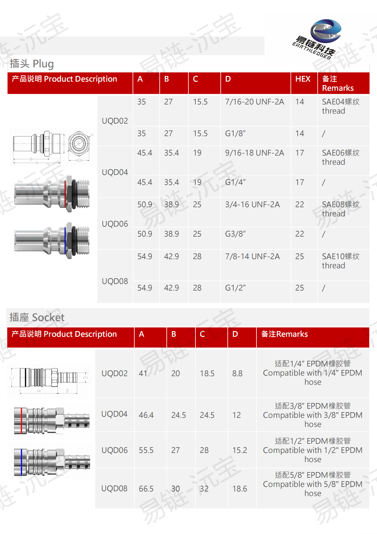 UQD-02水冷快接直插式插头G1/8蚂蚁